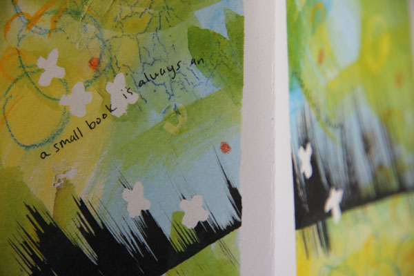 Then, as I was inspired by yesterday’s mini books…I decided to make another! Yes, this one is totally handmade, so it looks…well, less polished. I had fun doing it. I may be on a book making binge, as this one was fun too! I like being able to work as I go along, and not have to plan too much along the way. Unlike the linoleum print, where one has to plan out a little…this book had no plan at all! MUCH more fun.