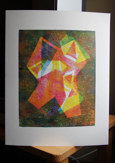 I also worked on some monoprints today. I forget if they are “monoprints” or “monotypes“. Clearly, a novice printer. See my color theme?: