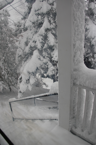 These photos were taken at 9am…and the “snow emergency” was through 7pm…EGADS!  Eventually, the snow in the seat of the chair was taller than the armrests.  Sigh…is it spring yet?  My ever optimistic friend, KP, was waxing poetic about the lovely blanket of powdery goodness…I was peering out feeling trapped!  Perhaps if it was good snowball snow, that would have made up for it.  🙂
