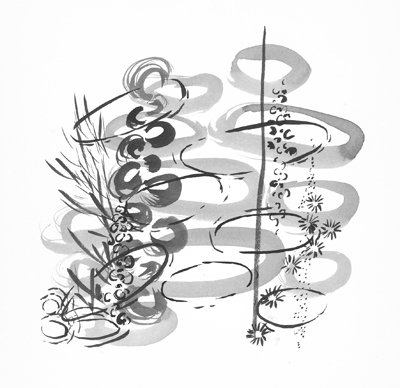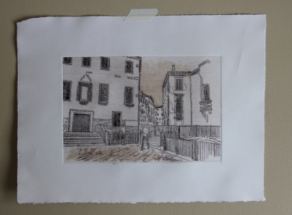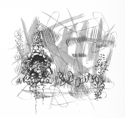 Well, I’m still experimenting. I’m starting to feel that I need to work on something “bigger”. Everything that I do has just been little sketches. Perhaps I need to try to tackle something…MORE. Who knows what that means. Can one get loopy from the smell of ink? gum arabic? banana bread? (I made some yesterday).