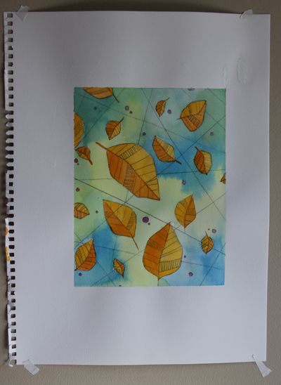 The next images are of a watercolor and a trace monotype, which I’ll add watercolor to afterwards. I like watercolor. I don’t feel that it’s very easy, but I like blobbing around the transparent colors. I know. If I was doing a more complex picture, perhaps I would find it too hard to enjoy! Perhaps I should try a still life, or something. I’m certainly not doing anything en plein air. My paint would freeze. Yes, the warm weather is long gone…this morning it was a chilly 19 degrees. 19 DEGREES!!!