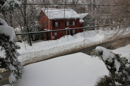 The snow is…ridiculous. I have done nothing productive this week…on account of the blizzard/ice storm/feverish & snotty preschooler. I have some pictures of the snow nonsense to make all of you not in the area cackle with schadenfreude. I’m glad that I also got a parking ticket the other night for being PARKED IN MY DRIVEWAY. Apparently, I was interfering with snow removal. Maybe we should have our driveway shortened. I wonder if the telephone poles nearby also got a ticket, as they are as close to the road as my car is…