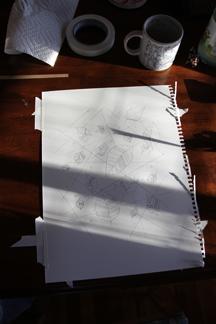 A bit of an experiment with scratch foam…kind of like the styrofoam trays that you get from the grocery store. I like the fact that the pieces look like they are part of the sky, but somehow the overall isn’t great. I need to help it somehow…suggestions?
