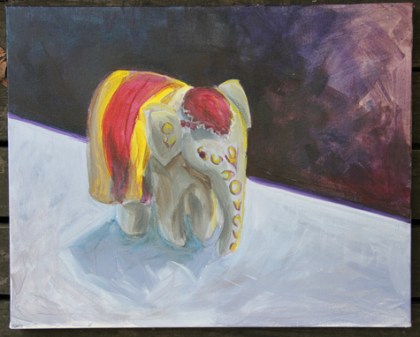 Anyway, I picked a small elephant toy that I’ve had since I was a kid. My childhood friend, Anita, gave it to me. Her dad was from India, and they went there on vacation. So, here is my little elephant…in pretty good shape if you consider how old it is…