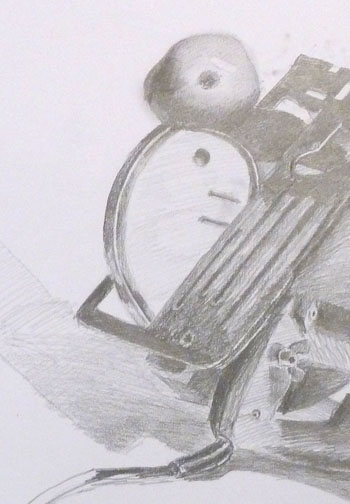 That time, I tried to draw the vise with only tones, and not too many lines. Very messy! Hmm! Now, what can I do with the next five that I have to do? EGADS. This one was kind of fun because of the general messiness of it all. I love that I’m scrubbing away with black charcoal in our laundry area while I look at this vise. Doesn’t everyone dream of a laundry area with fine dusting of black charcoal on everything? I know…not very Martha Stewart of me.