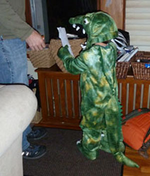 No, I did not make that costume. I gave up for two reasons: 1. a crocodile was too complicated to make, and 2. I had a strong suspicion that he would not wear the costume in the first place. Don’t even get me started about the costume that I slaved over last year that he also did not wear. My child finds halloween too stressful. Hmm.