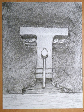 Please excuse the generally poor quality of the photos in this post. As the post title states, it’s a drippy mess outside, and I had to take all of my pictures indoors. So, this first drawing is a pretty straightforward charcoal drawing of the vise. Next: