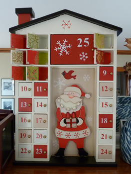 I know. All my architect friends will fall off their chairs in horror. Look at that pitched roof! Whatever. I always loved advent calendars as a kid. This is even better because I can put stuff in it! My son loves it. However, he keeps asking me about what’s behind the big door. I am now feeling that the silly little christmas ornaments that are behind that door will be a big disappointment. Hmmm. What to do.