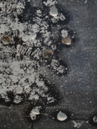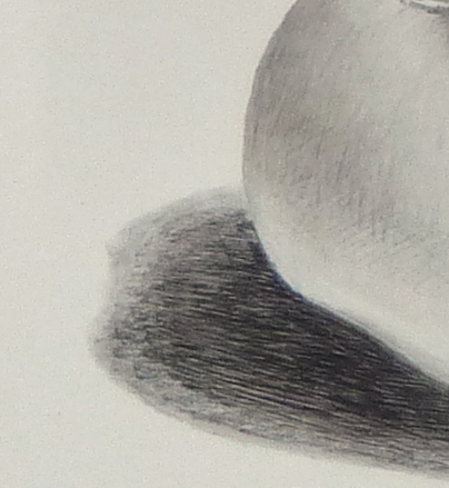Now, all was going well until I tried to make DARK marks. Then, it was like trying to draw with a candle on Teflon. The soft pencil just slid across the surface, and didn’t really work. Here’s a closeup of the shadow: