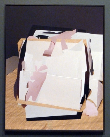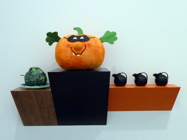 No, that is not one of my shelves at home. Any shelf of mine would have more stuff on it. Hmmm. Who is this making fun of? The art world? The audience? The bourgeoisie? (eh?) Our capitalist culture? Maybe it’s not making fun of anyone??? I kind of want that pumpkin. I wonder where he got it from? I actually like this piece better in retrospect. I guess he’s tying these disparate consumer goods together through form and palette and elevating it to “Art”? Hmm. I’d like it even more if I could take that pumpkin home with me. My take away from that piece of art is that I want that pumpkin.