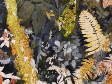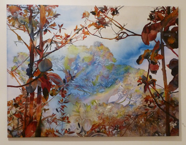 I really liked her work as well. She was using watercolor on stretched canvas. Detail: