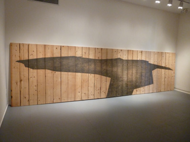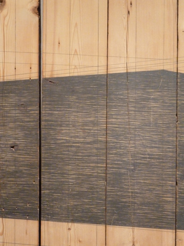 This was really beautiful. This is an interpretation of Henry David Thoreau’s 1846 survey of Walden Pond. The “pond” is drawn in graphite across these reclaimed wood planks. I know. I’m a sucker for graphite…but who isn’t? (you MUST agree). I love the depth created in this as well. It appears that they have located the pond in perspective from a certain point…perhaps Thoreau’s house? Not sure. Look at the graphite!!!!!