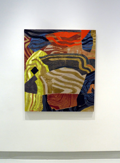 This series is titled, “Lost Horizons.” While these paintings are abstract, the collage-like areas of stripes made me think of fields of grain, or bodies of water. The piece above was one of my favorites. This may not be the correct analysis of the work, but I feel that they have a “quilt-like” quality to them. Sort of like Gee’s Bend on hallucinogens.