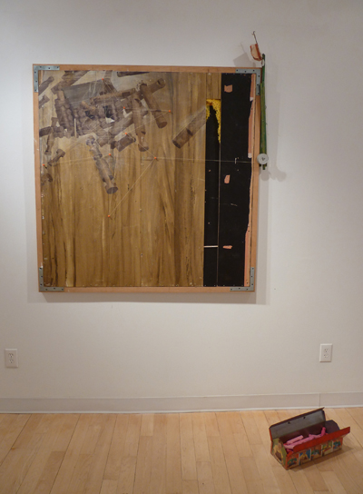 Yes, that’s a vintage box of painted pink Lincoln Logs! I found this piece to be poignant as some kind of communication with her father. I wonder if he’s seen it? I almost feel that the box of pink Lincoln Logs is enough of a piece itself. But the big 2D portion of the piece is pretty impressive as well.