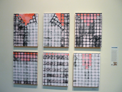 So THIS is the work of my advisor! Don’t you love it? I’m sorry for the weird angle of the photo, but it was impossible to get directly in front of it and back up far enough for a good shot. Her work is inspired by the subconscious mark-making of others. She plays with scale, color, layering, etc. It was great to see her and hear her talk about her work.