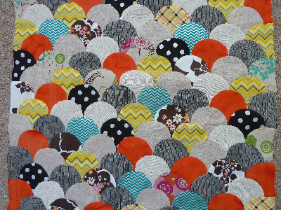 Sewing curves is challenging…so I decided to put myself in circle boot-camp by doing this koo koo quilt. So far, it has been super fun…albeit a royal pain in the tush. This is a mini-quilt…so the width is around 32″ or so. Each of those little scallop shapes is probably 4″ wide. In doing this quilt, I learned why people don’t normally use linen-type fabric for quilts (which I did.) The weave of linen is so wide that it’s like trying to sew a piece of friggin’ GAUZE.
