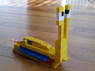 He also make this Lego version. Notice the flames coming out the back of the snail. Nice touch.