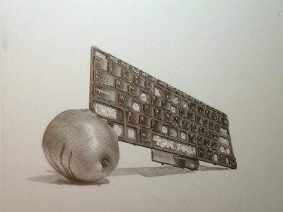 Someone else’s trash is another person’s treasure! Yes, I pulled that keyboard out of a trash can. It was in our own trash can here at home, so I figure that makes it slightly less gross. You can agree with me now. I’m wondering if these B&W drawings are less exciting than the bright, colorful stuff that I’ve done in the past. I mean…have you yawned yet while reading this? Be honest.