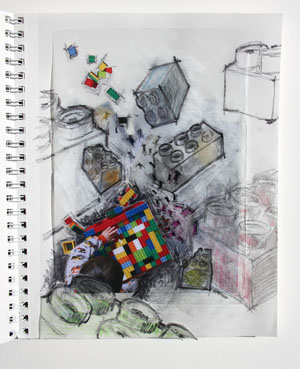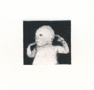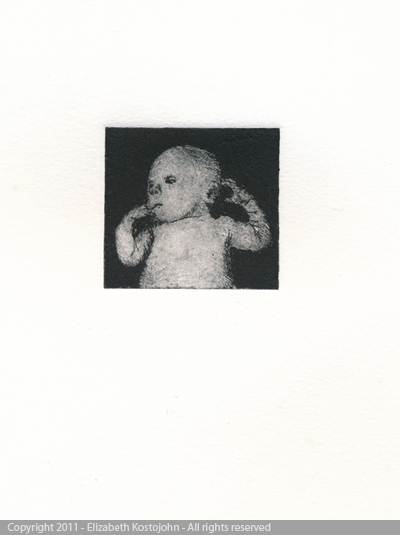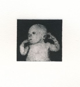 D.D. really liked my drypoints, and wanted me to push this further. I showed her that small drypoint of my son, which is the print recently accepted at the Center for Contemporary Printmaking. I found her positive response to the drypoints really interesting, as I think of the drypoints as much more “conventional”. She felt that I could take advantage of my ability to draw and drypoint’s “traditional” aesthetic, and do something different with it.