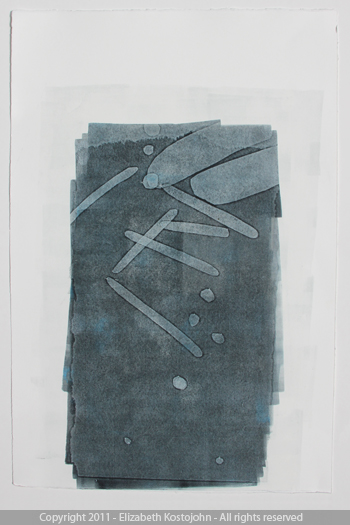 I know…why so blue? Well, I wasn’t thrilled with this week’s output. At least there was some experimentation, with the woodblocks and trace monotypes.
