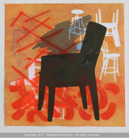 This series on chairs got some interesting comments. I think that people responded well to the layering and textures. The icon of “chair” brought much debate/discussion. Several of the reviewers talked about “narrative”, which comes when one uses a recognizable form like this.