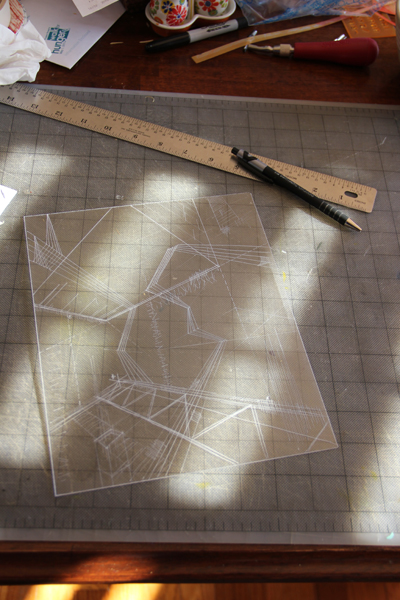I know. It’s hard to tell what’s going on. I hope that will improve when I print it. I also worked on a new drypoint plate. Here it is: