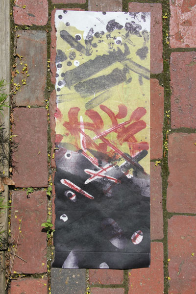 So, yesterday was an interesting class with Christiane. I showed her my two, long prints. She helped me to improve them by giving them some focus. She felt (and I agree), that they were too busy. So, I reworked one of them…and painted it black!