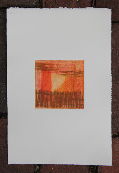 This has been a blah week, work-wise. Most of what I’ve done, I’m not thrilled with. Last night, I had my carborundum collagraph class. I was NOT pleased with how things were turning out. Here is the result:
