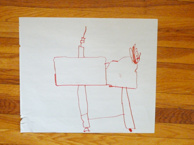 I cannot remember what this is. The top part may be an antenna, but I’m not sure. Thoughts? What would Freud say? That I’m an awful mom? I really hope not. At least he’s not drawing those little crying faces in cages, as I showed in an earlier post. Now, THAT was worrisome…