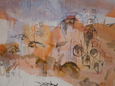 This is an enormous painting. I remember seeing it last year. I love the mix of washes and loose drawing. It is an oil painting, so I guess it’s not a drawing at all…but it almost looks like it could be a work on paper with the transparent color and calligraphic markings. I love the depth in this…the layers…the beautiful lines.