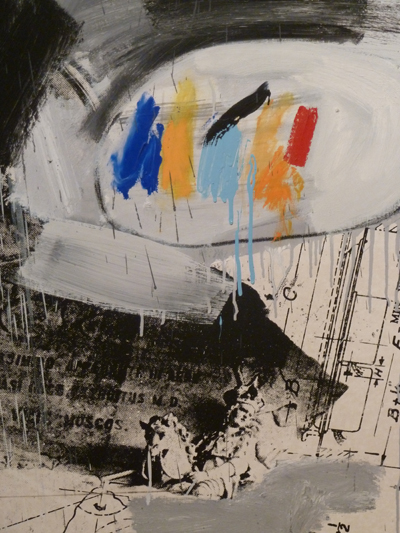 So great. I love the mix of drips with the precision of either silkscreen or photographic transfer (?). I just love it. I could eat it, I love it so much. Sigh. Here is the “piece de resistance”: